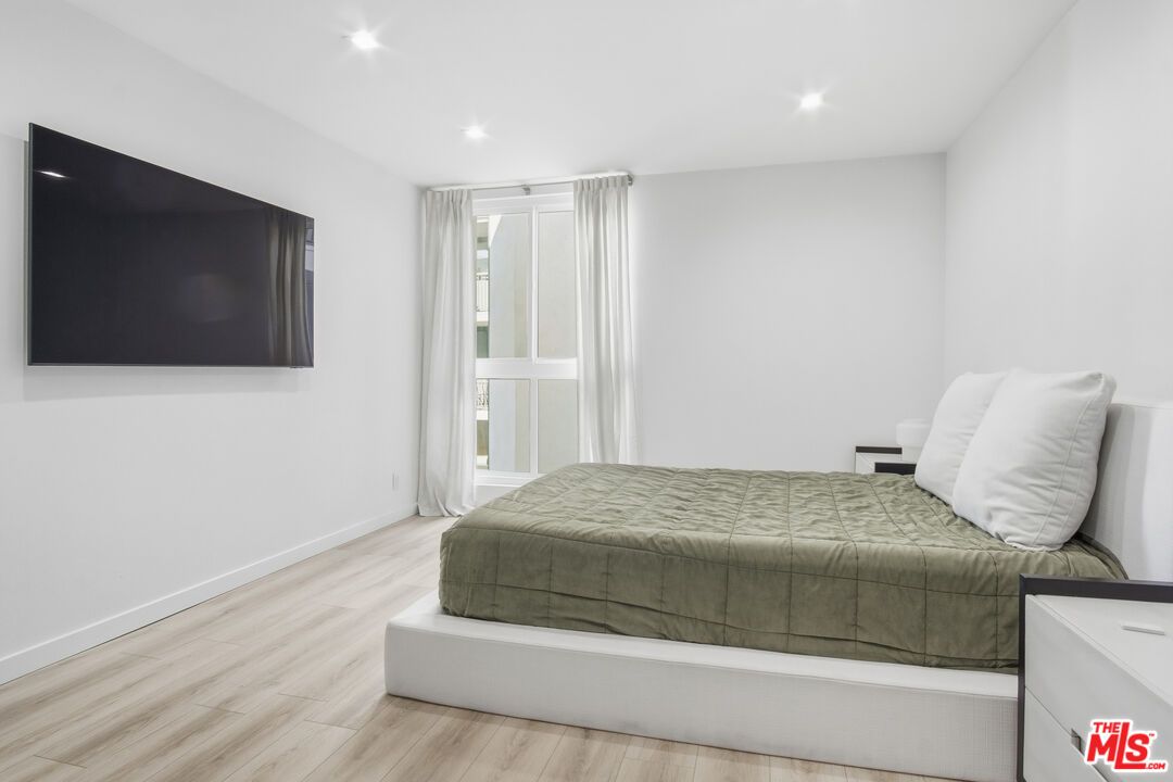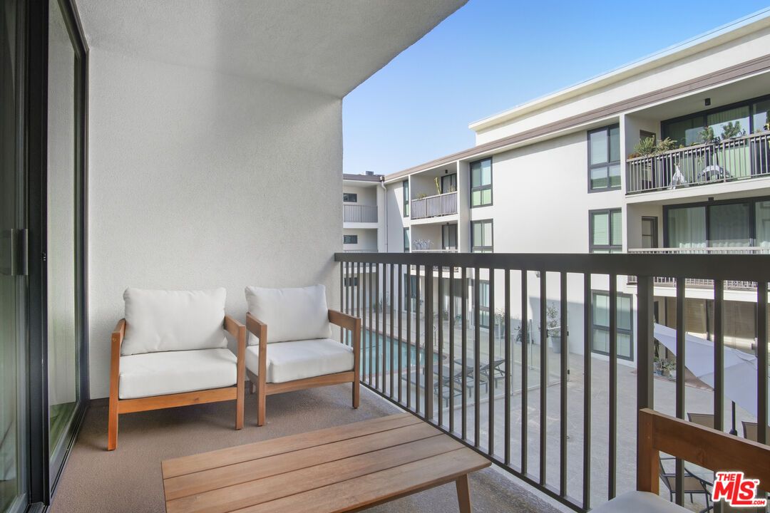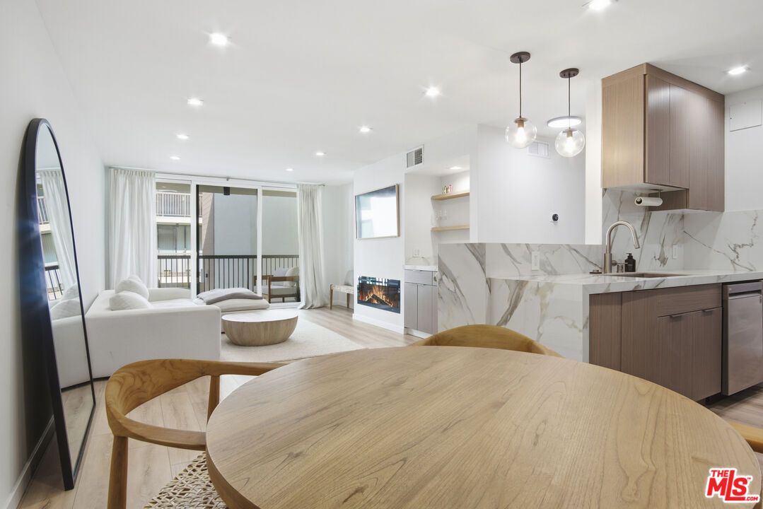 Discover elevated metropolitan living in this impeccably updated 1-bedroom, 1-bath residence, perfectly positioned on one of West Hollywood's most desirable, tree-lined streets. Blending modern sophistication with effortless comfort, this second-floor condo offers a serene retreat just moments from the city's best shopping, dining, and nightlife. Step inside to a light-filled open layout, where a spacious living room with a chic fireplace flows seamlessly to a private, covered balcony overlooking the lush courtyard and sparkling pool, ideal for morning coffee or evening unwinding. Floor-to-ceiling glass sliders invite indoor-outdoor living at its finest. The beautifully renovated kitchen features quartz countertops, sleek cabinetry, and a generous dining area perfect for hosting. The serene bedroom includes an expansive walk-in closet and an east-facing window that welcomes soft, natural light. A spa-inspired bathroom showcases a quartz vanity, floating cabinetry, and a designer shower with a rainfall shower head. Additional highlights include recessed lighting throughout, central AC and heat, and ample storage. Residents enjoy coveted building amenities: a resort-style pool, fitness center, controlled security access, and one assigned parking space in the gated garage. Cable, WiFi, water, trash, and HOA fees are all included, an exceptional value in this premier location. Nestled between Santa Monica Blvd. and Melrose Ave., and just moments from Kings Road Park, Erewhon, Gelson's, and countless iconic L.A. destinations, this unit offers both luxury and lifestyle in equal measure. Available furnished for $3,750 for a truly turnkey, elevated living experience.